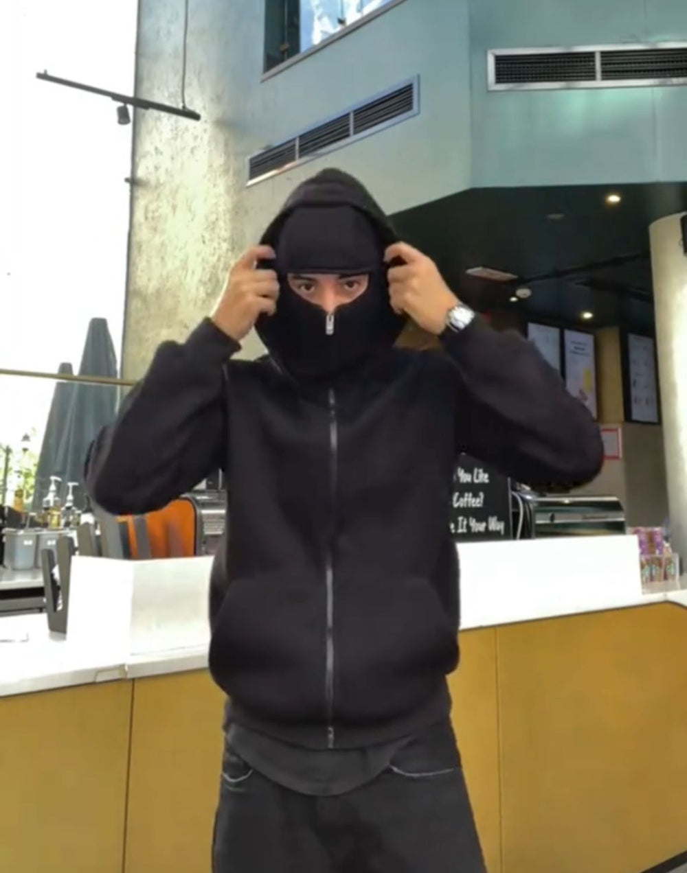 Diseñada para quienes buscan estilo y funcionalidad en una sola prenda, esta sudadera con capucha con pasamontañas integrada combina comodidad, protección y actitud urbana.